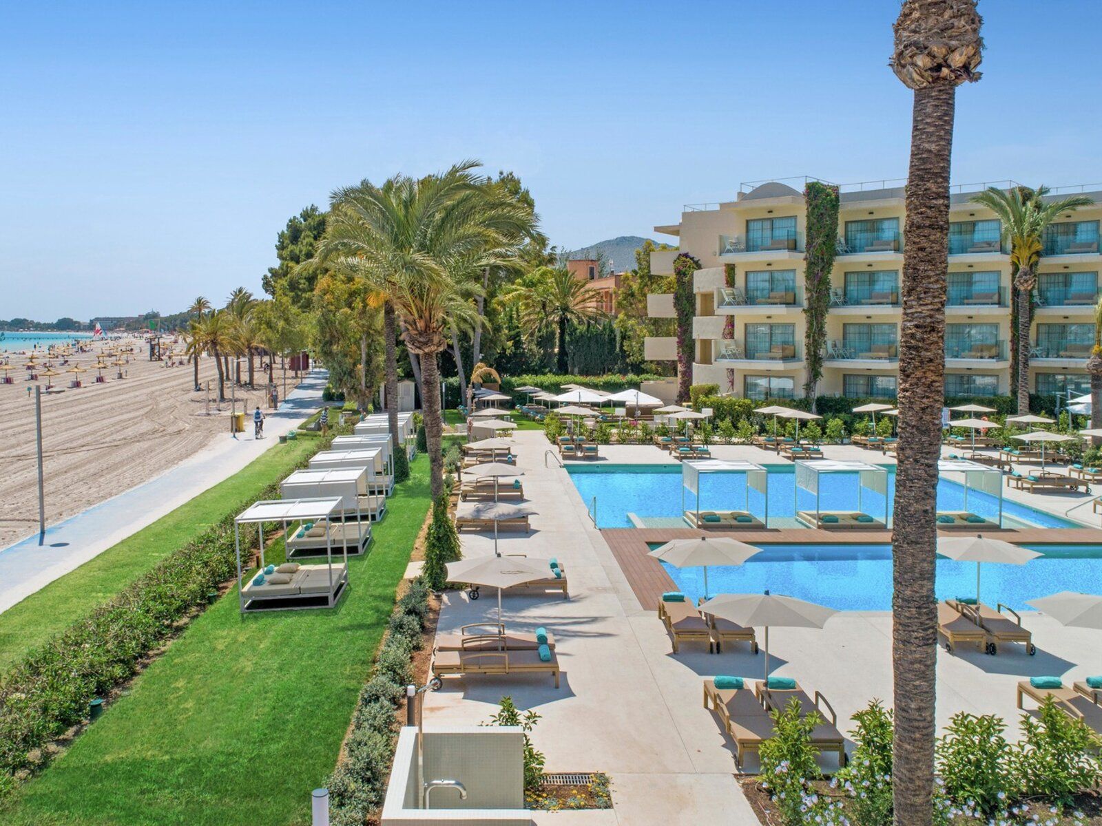 Das VIVA Golf Hotel liegt direkt am Strand von Alcúdia und bietet eine ruhige und entspannte Atmosphäre nur für Erwachsene. Es verfügt über moderne Zimmer, ein Wellness-Center, mehrere Restaurants und eine Vielzahl von Sportmöglichkeiten, darunter Golf und Wassersport. Hier deine Auszeit planen!
