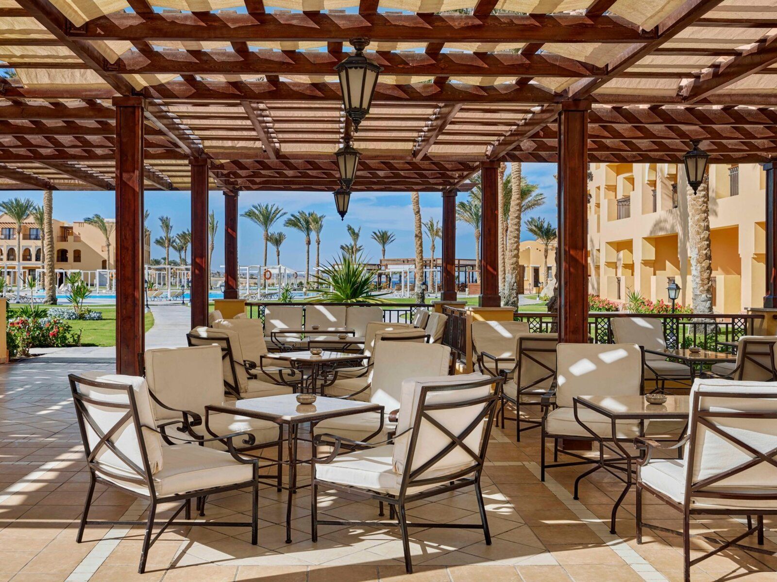 Hier geniesst ihr eine moderne, stilvolle Einrichtung in einer traumhaften Lage am Roten Meer. Direkt am Strand der geschützten Coraya-Bucht gelegen, bietet es mit seinem herrlichen Hausriff ideale Bedingungen für Taucher und Schnorchler, die die faszinierende Unterwasserwelt erkunden möchten. Geniesst die Sonne an Vier Pools , darunter einen Kinder – und Relaxpool sowie ganze 27 Wasserrutschen im Aquapark Madinat Coraya.
